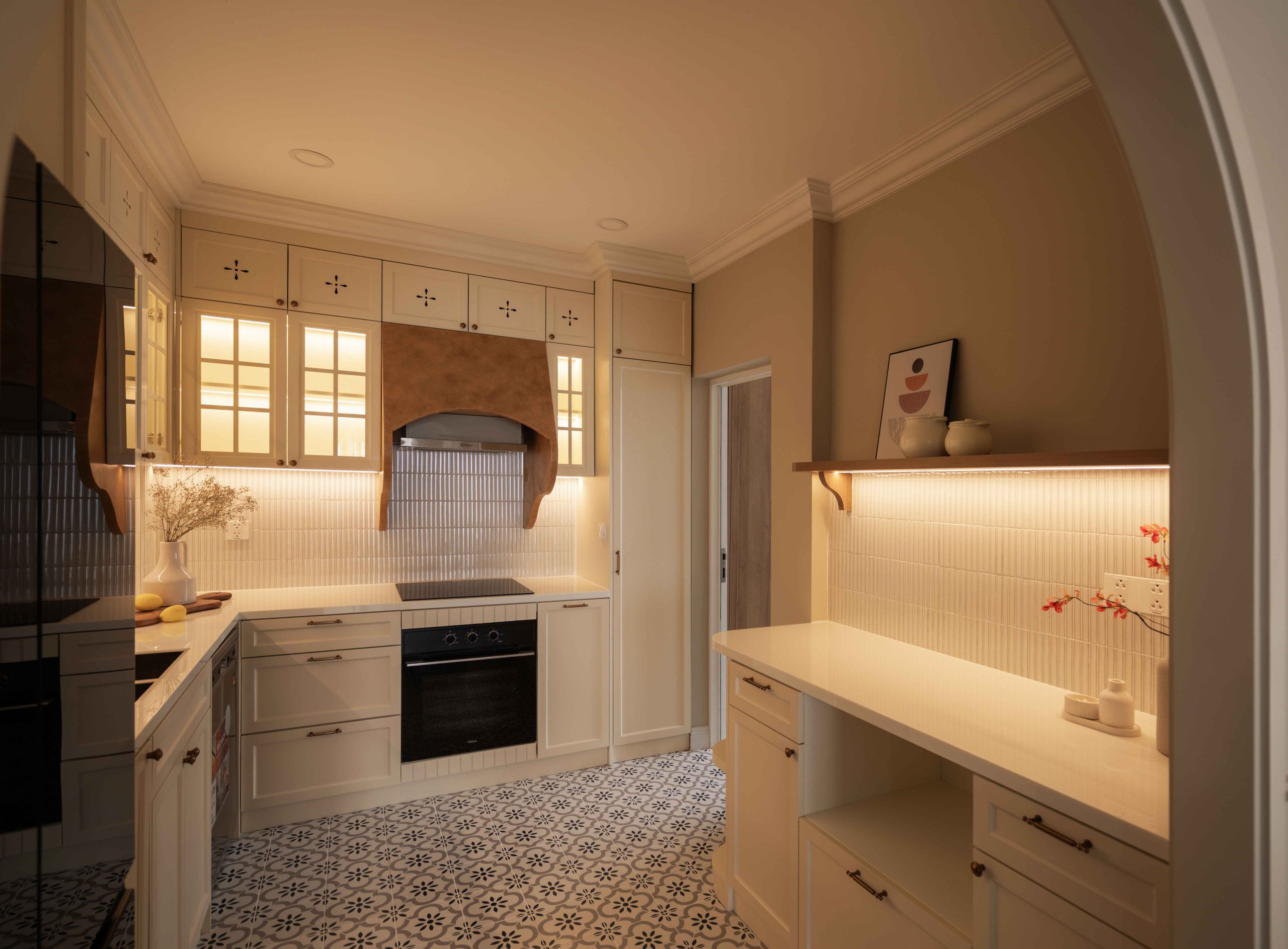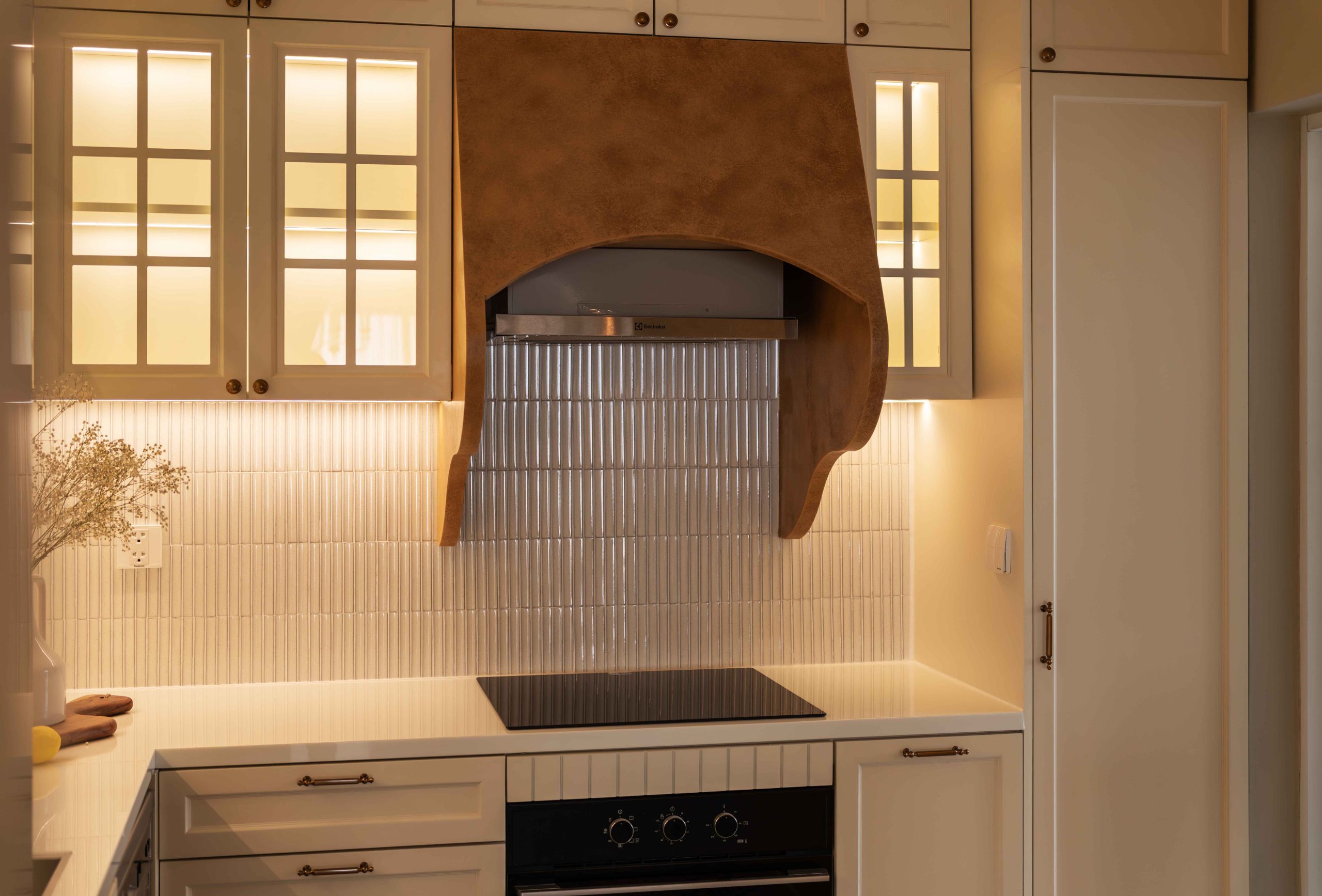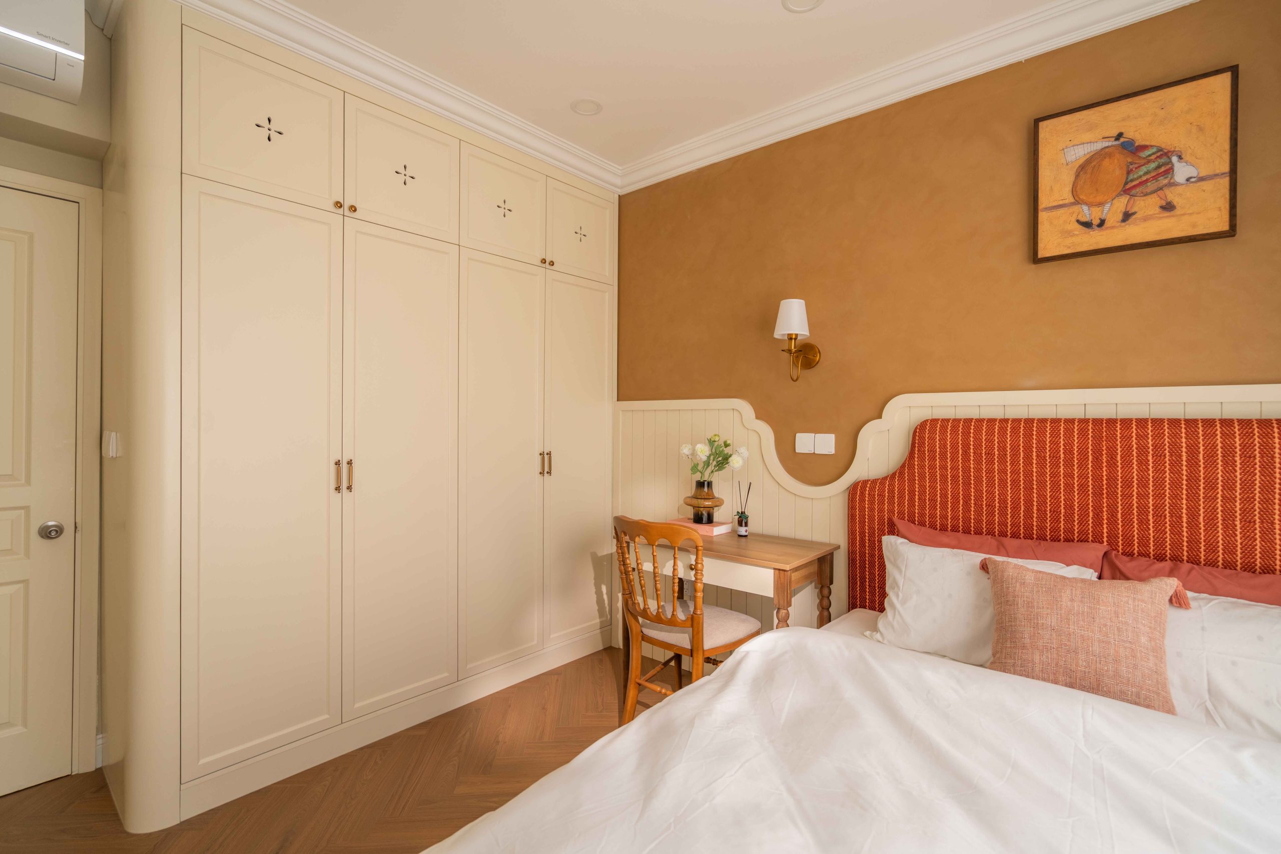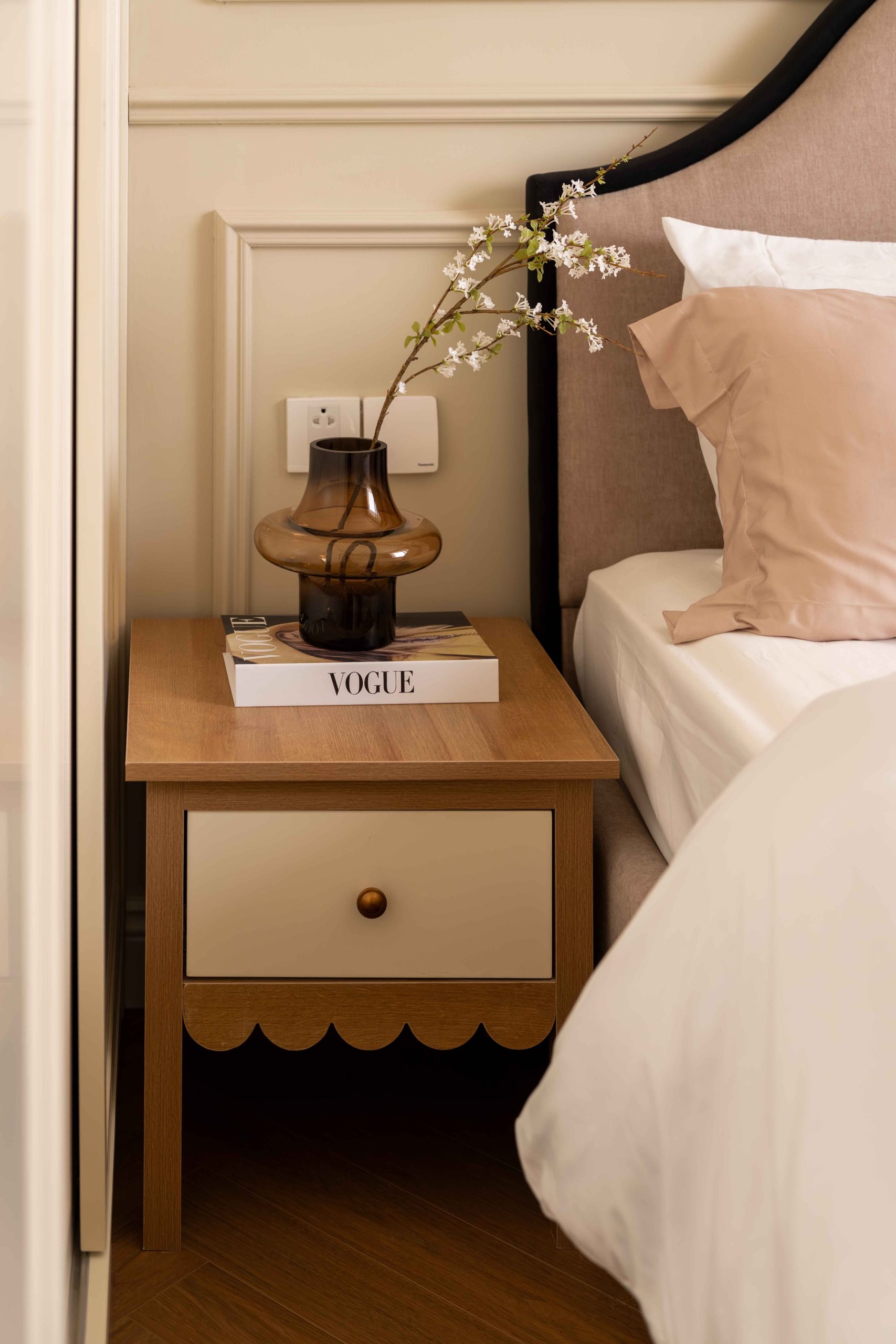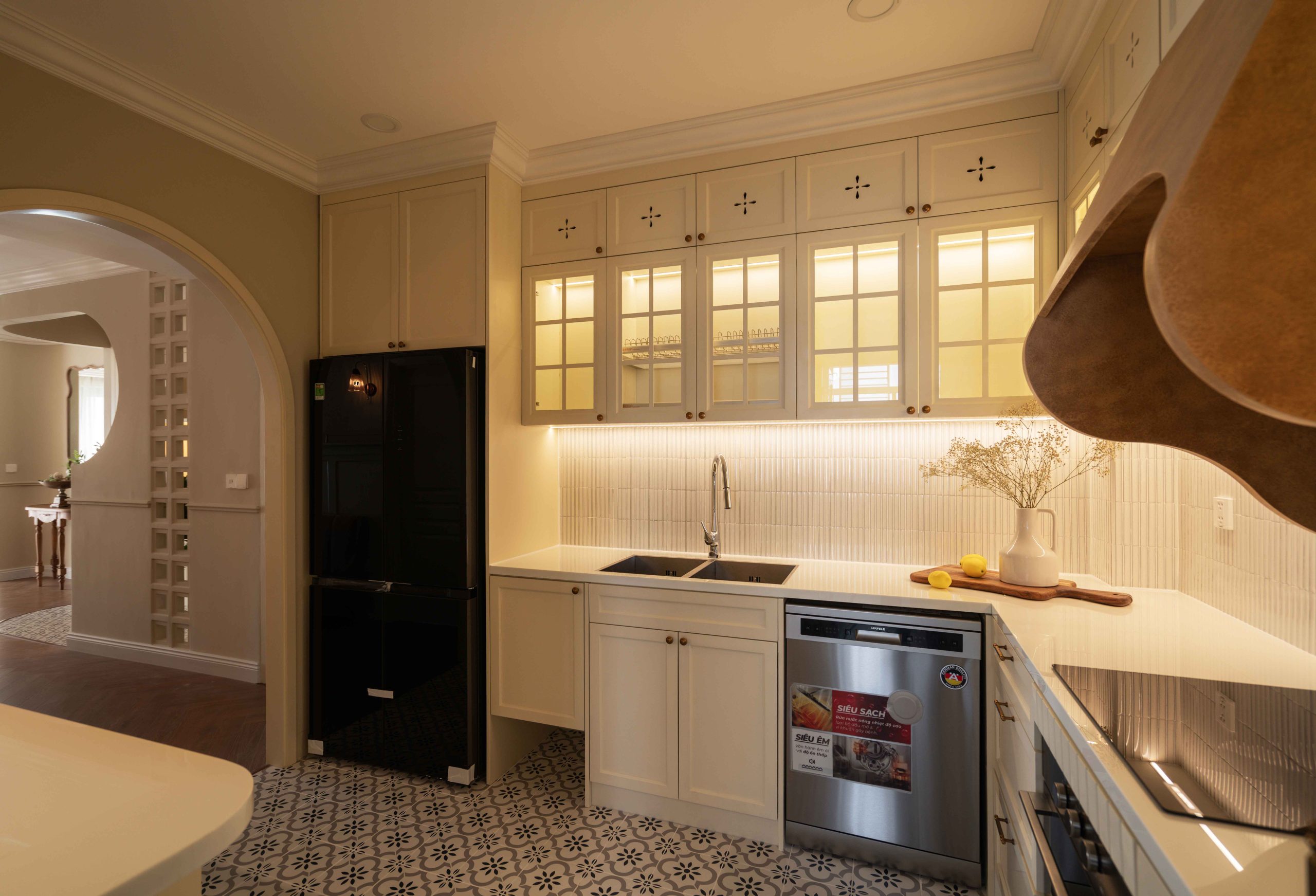 Căn hộ 120m² tại Chung cư Mỹ Đức Q7, TP.HCM, được thiết kế theo tinh thần Elegant x Farmhouse, là một thử nghiệm cho chính câu hỏi đó. Không tìm cách tái hiện lại bất kỳ ký ức cụ thể nào, không vay mượn một hình ảnh hoài niệm rõ rệt, không gian này lựa chọn một cách tiếp cận khác: tạo ra cảm giác quen thuộc bằng những sắc độ tưởng chừng đã luôn tồn tại trong trí nhớ của mỗi người.