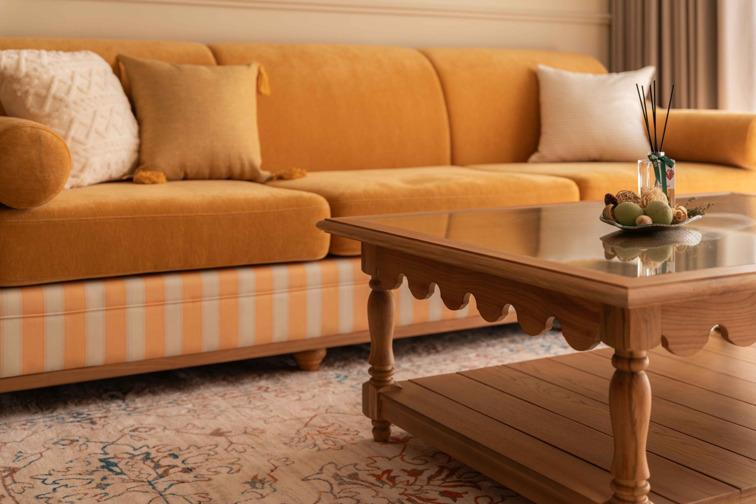 Cinnamon Sienna, xuất hiện ở sofa, ghế ăn và một số chi tiết gỗ. Là kết quả của sự pha trộn giữa đỏ, cam và nâu, được tiết chế bằng một chút vàng. Nếu