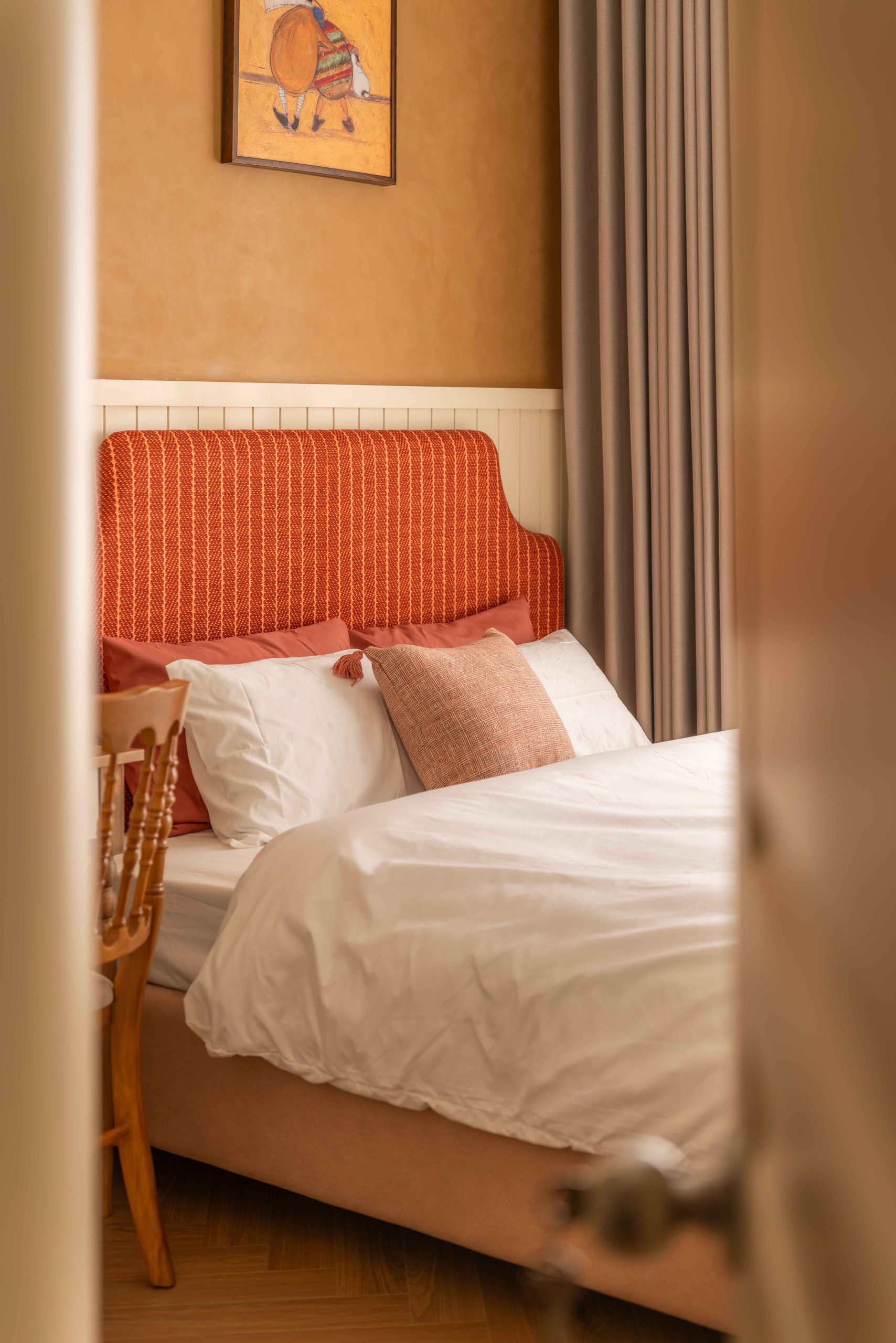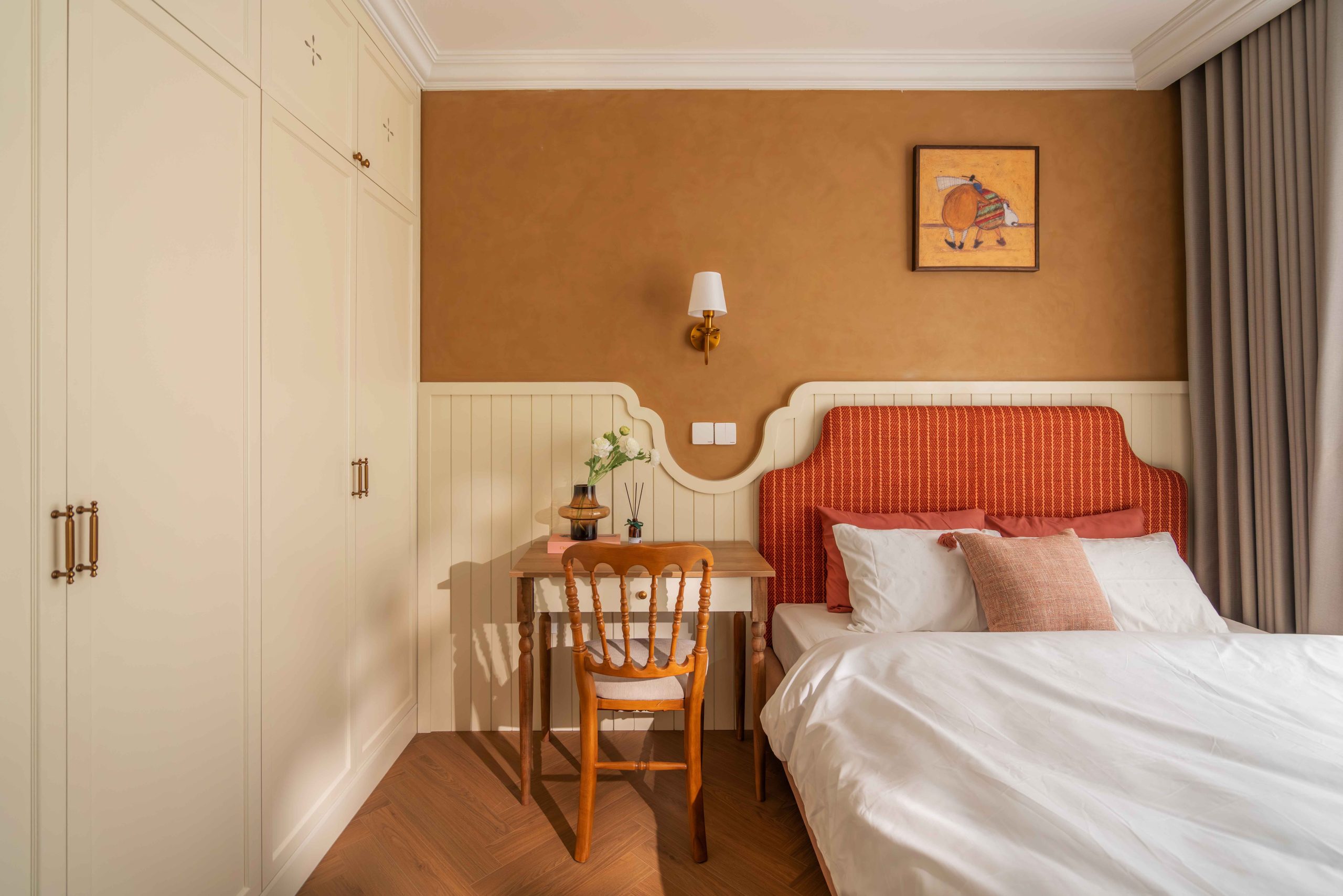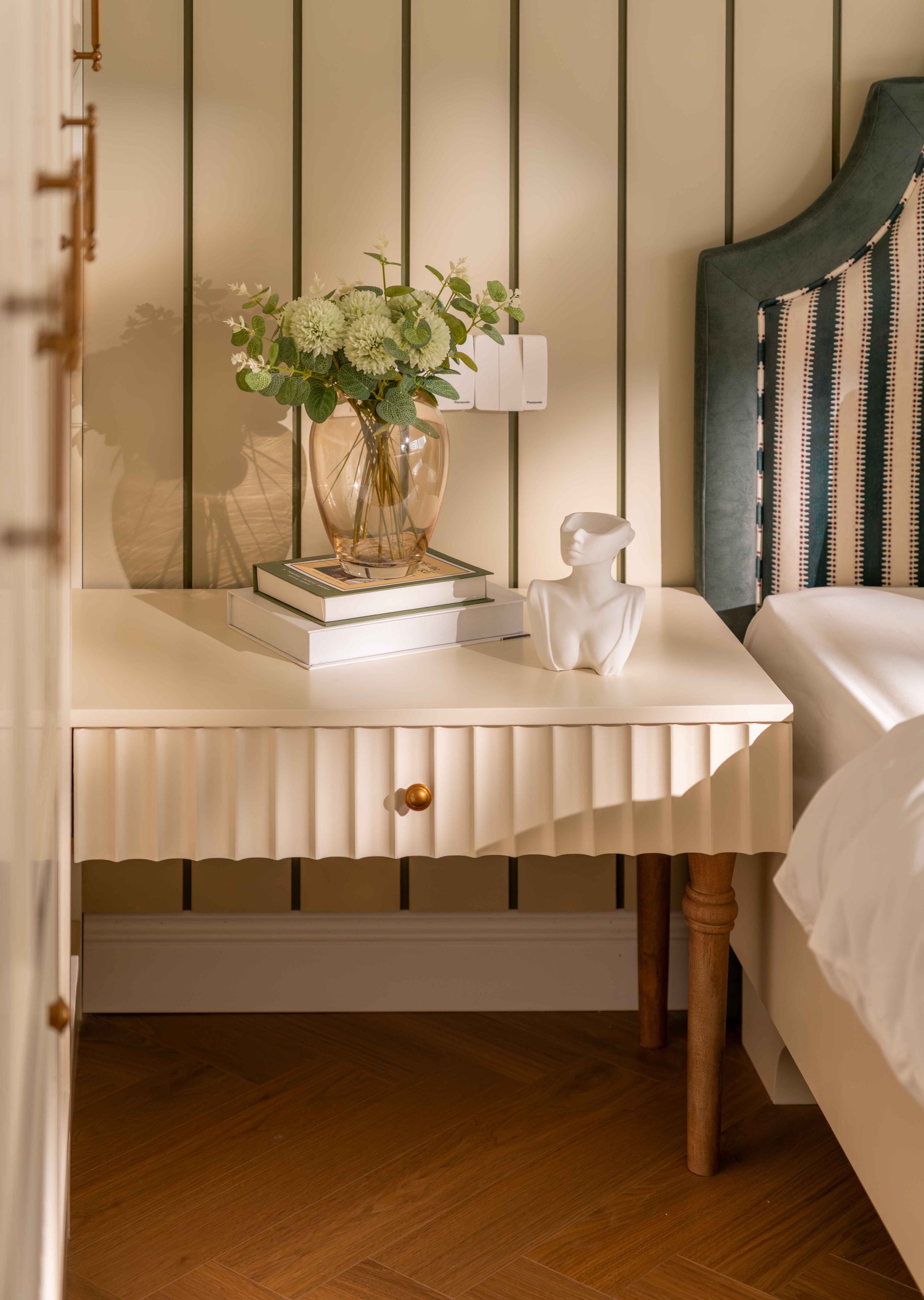 Velvet Moss, sắc xanh bí ẩn được tạo nên từ xanh lá, vàng và một lượng ghi rất nhỏ. Xuất hiện tiết chế ở đầu giường và một vài chi tiết nhỏ, Moss Green không giữ vai trò dẫn dắt, nhưng lại là yếu tố khiến toàn bộ bảng màu trở nên trọn vẹn. Sắc xanh này không phải thứ đầu tiên ta nhớ đến, nhưng lại là thứ khiến toàn bộ trải nghiệm trở nên hoàn chỉnh.