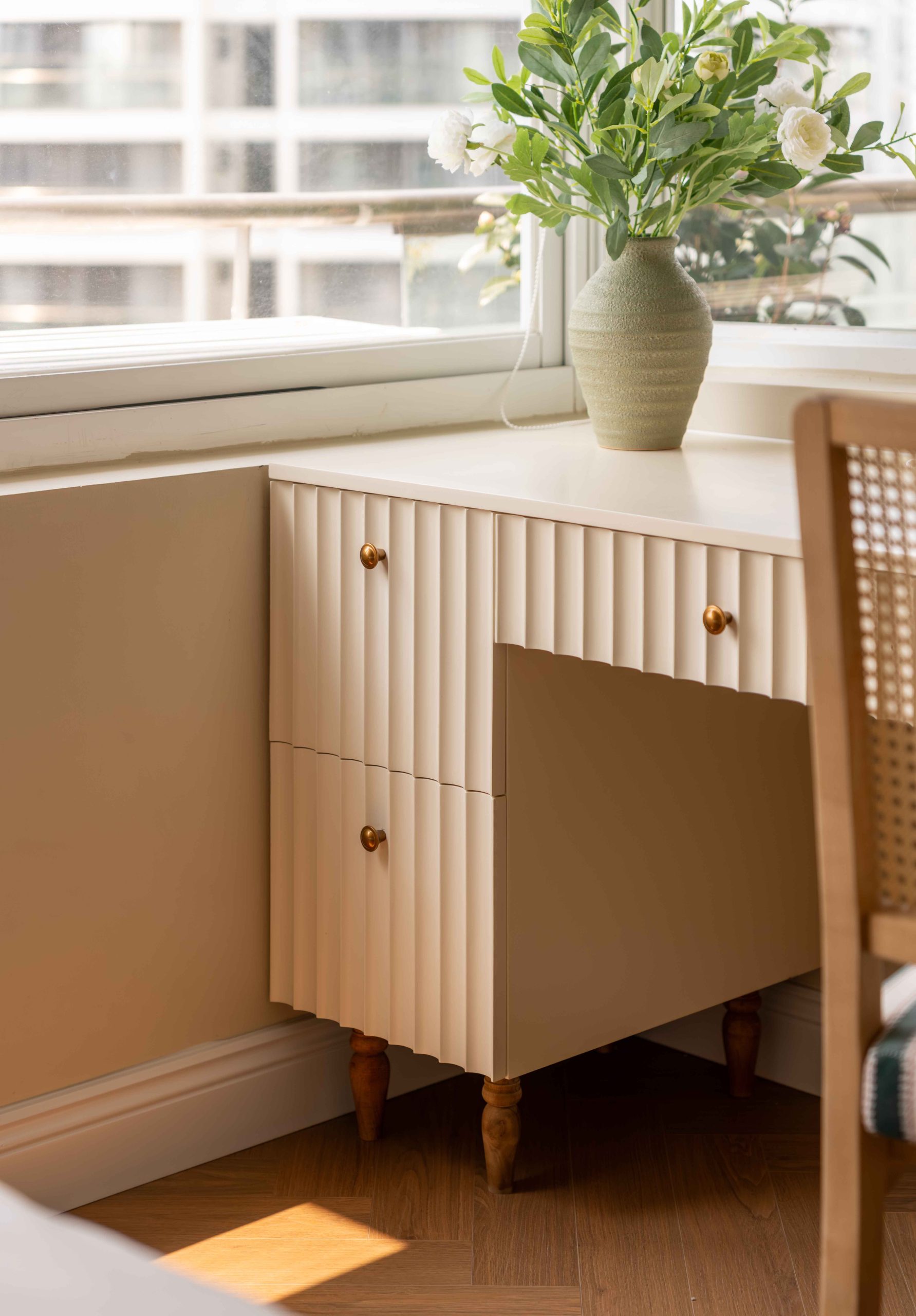 Buttermilk Beige, được tạo nên từ nền trắng, pha thêm vàng và một lượng rất nhỏ nâu nhạt. Buttermilk Beige trải rộng trên hệ tủ, tường và phần lớn các mảng nội thất lớn. Sắc độ nằm lưng chừng giữa trắng và vàng, tạo cảm giác dễ tiếp nhận, như một ký ức mơ hồ không thể gọi tên.