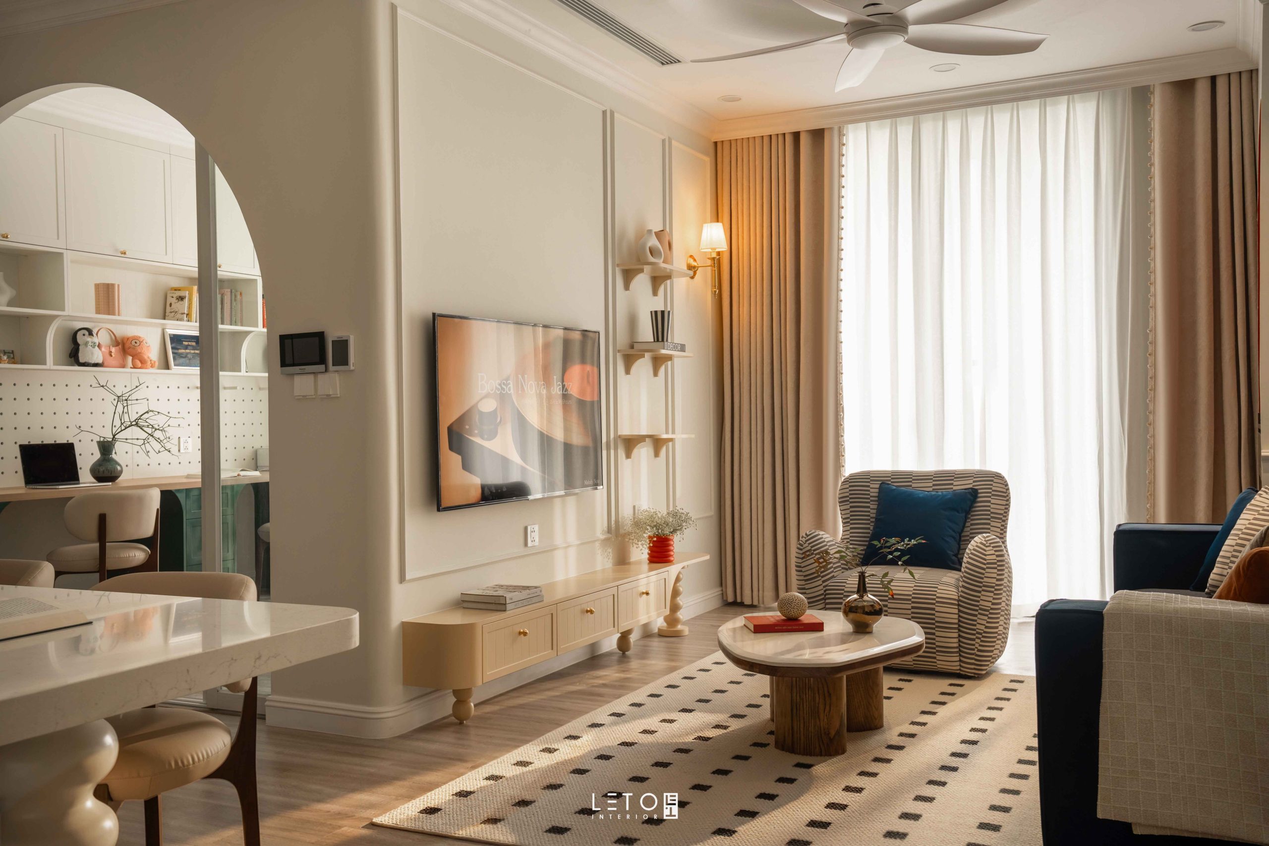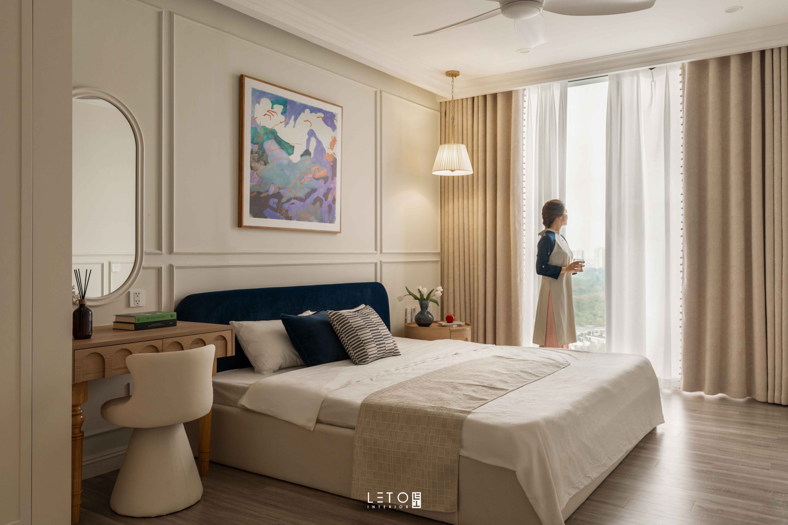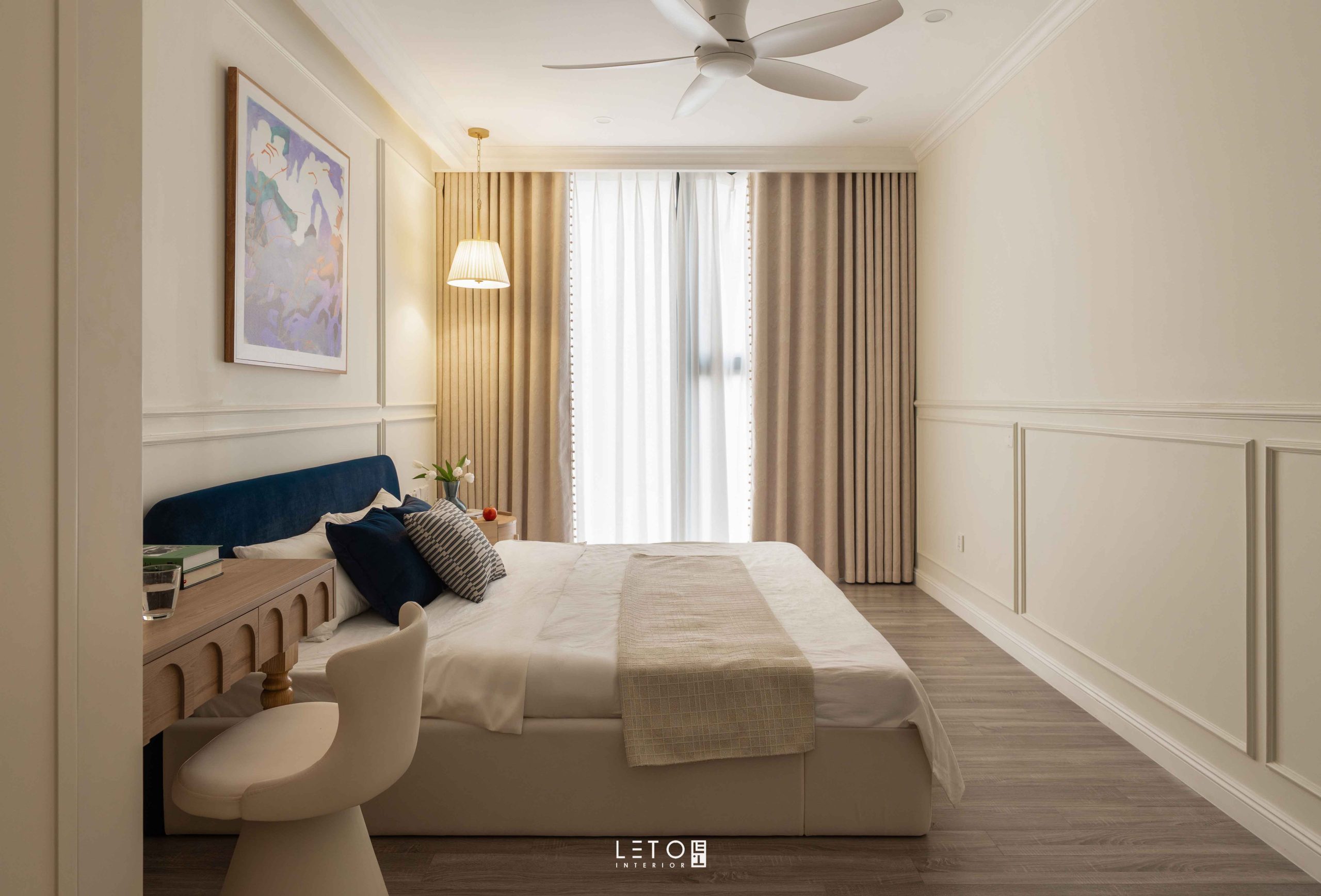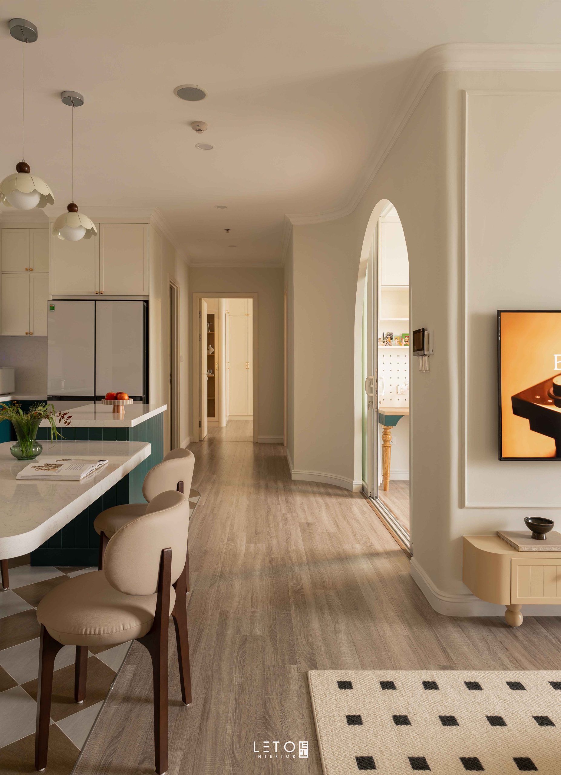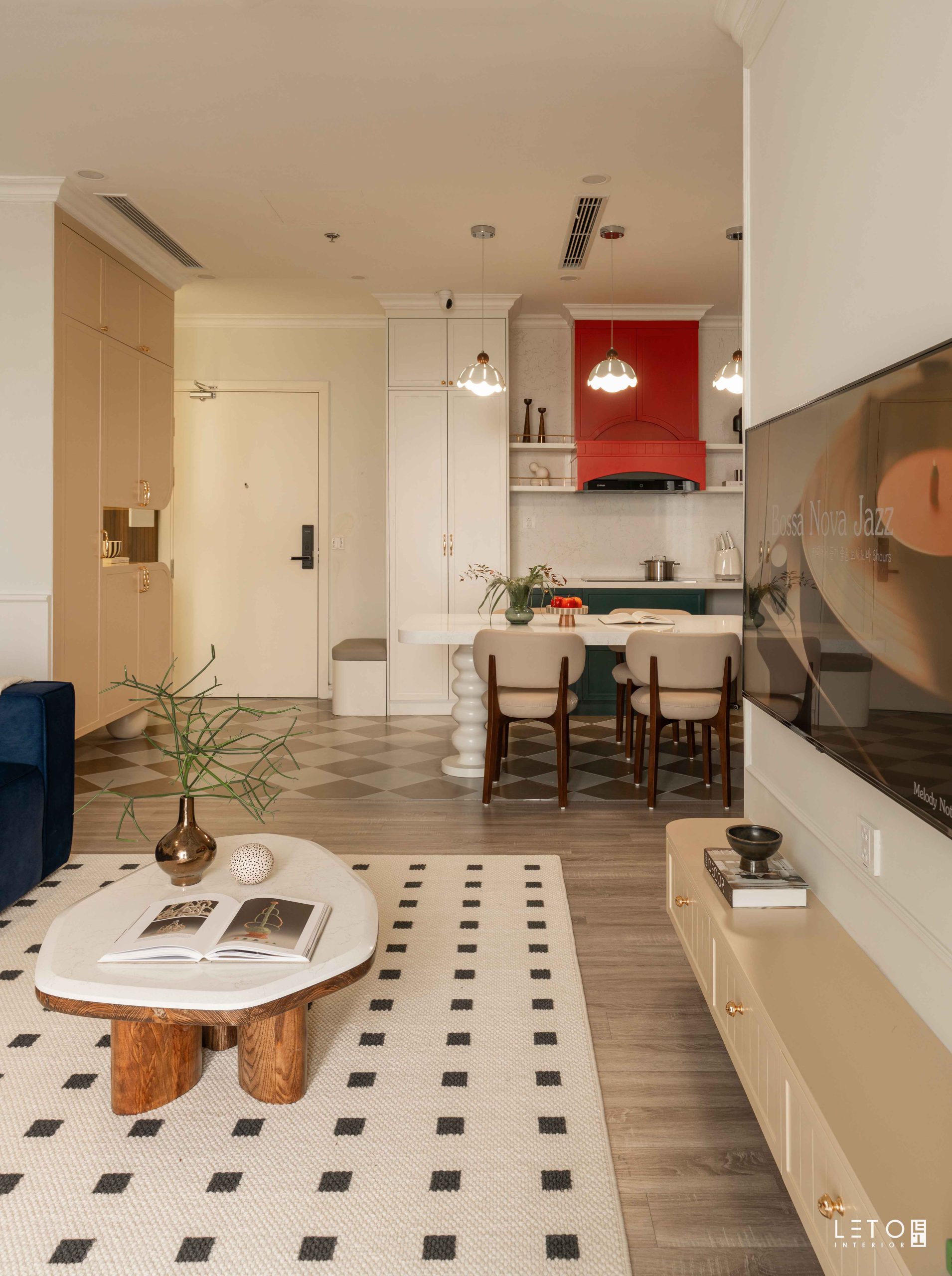 Căn hộ 110m² tại Sky Forest (Ecopark), mang tinh thần Art Deco là một trong những không gian sống thể hiện rất rõ vai trò của “màu phối”.