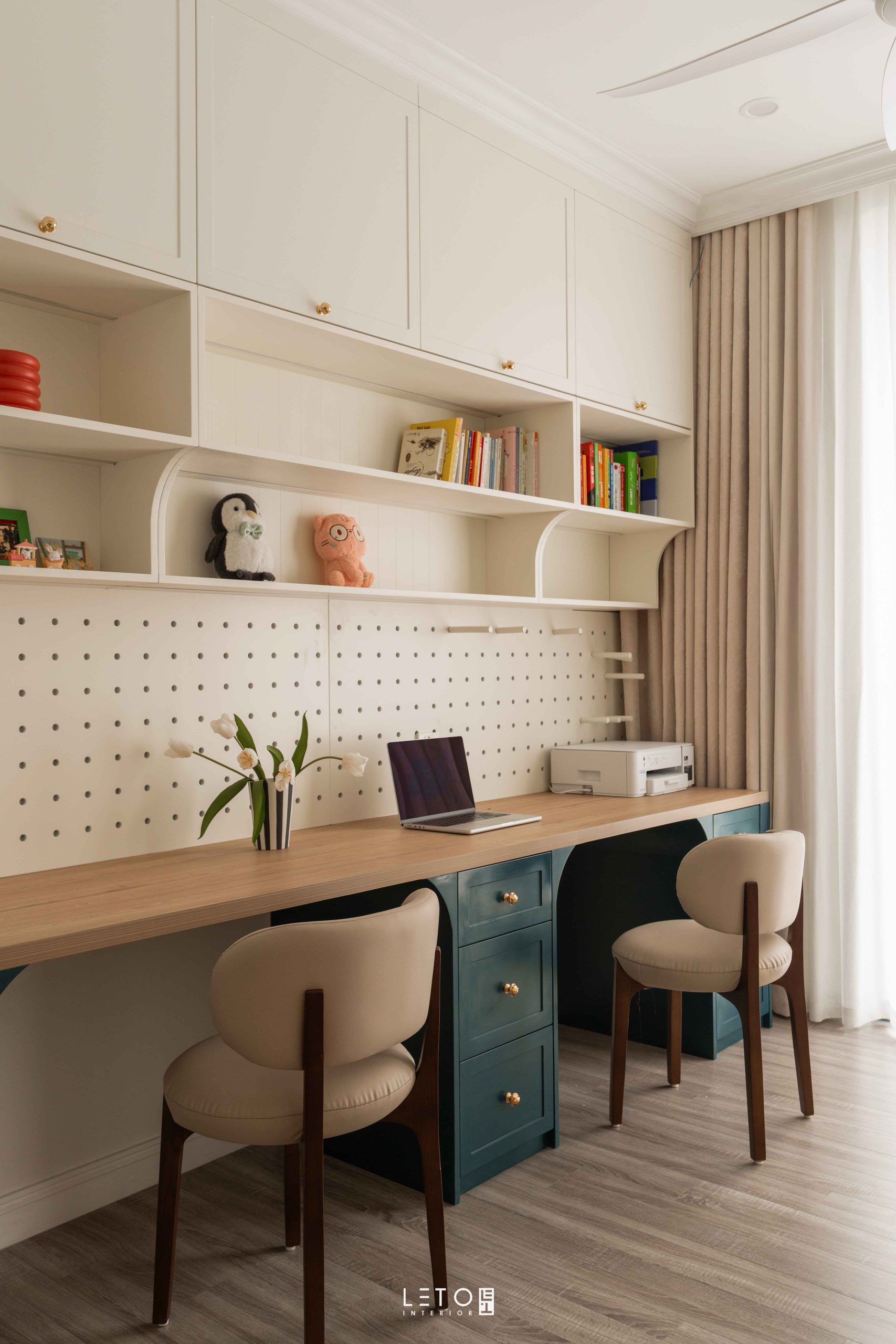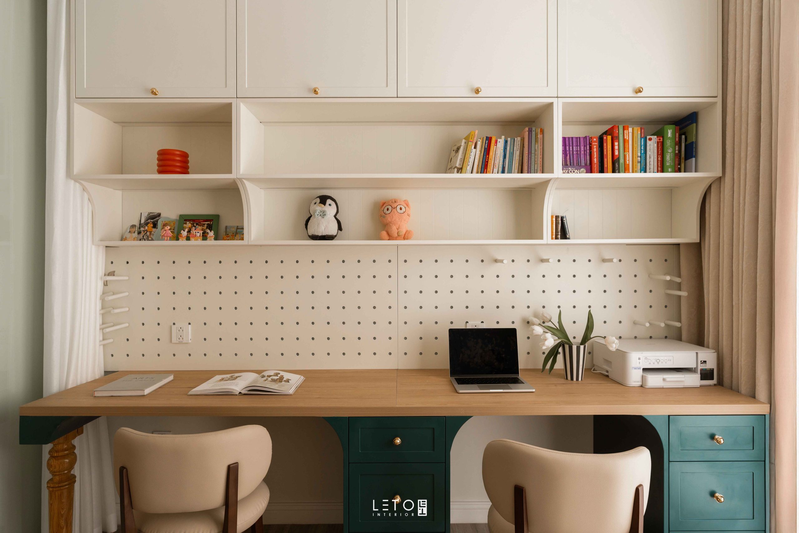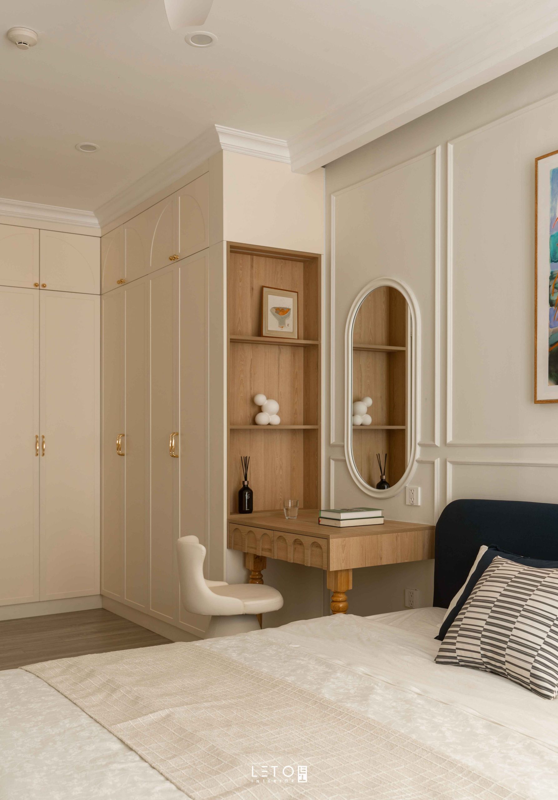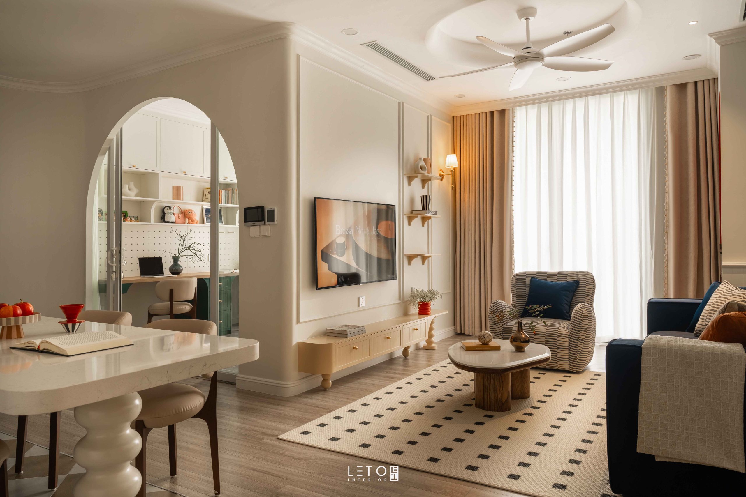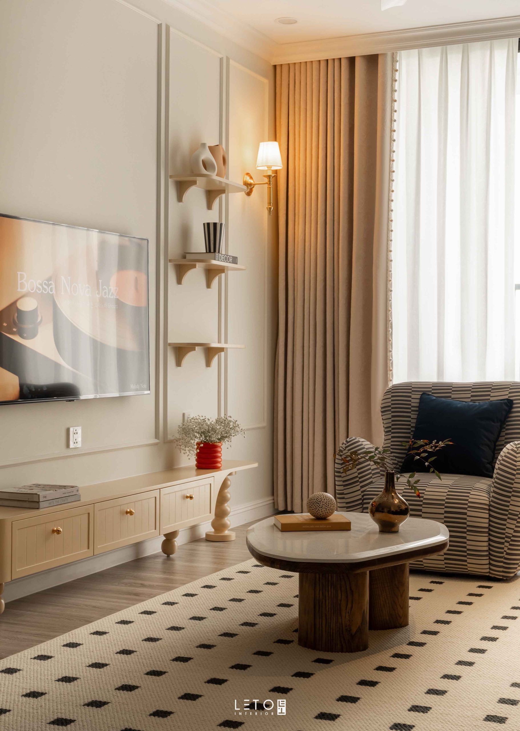 Căn hộ 110m² tại Sky Forest (Ecopark), mang tinh thần Art Deco là một trong những không gian sống thể hiện rất rõ vai trò của “màu phối”.